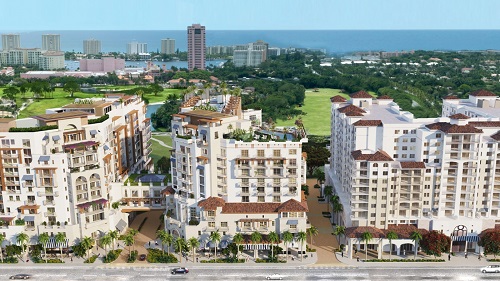 Via Mizner located north of Camino Real in Boca Raton is composed by 3 Phases encompass roughly 8 acreson. Phase 1, at the intersection on the south end, has 366 rental apartments. Phase 2 is a Mandarin Oriental Hotel. Phase 3, on the north end, is a 92-unit condo whose owners will have privileges at the hotel.